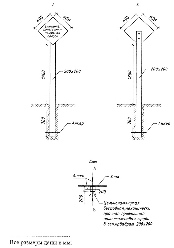 Специальный информационный знак "Прибрежная защитная полоса" (далее - знак) для обозначения границ прибрежных защитных полос водных объектов состоит из двух элементов: информационного щита и стойки-основания.